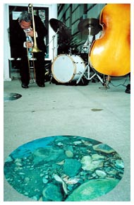 Im Vordergrund eine "Bodenluke" von Alan Sonfist zum Thema "Wasser"