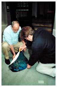 Mitarbeiter des Goethe-Instituts, New York, befestigen eine "Bodeluke" vor dem Eingang