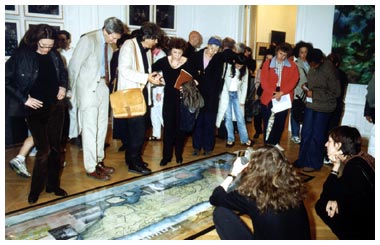 Peter F. Strauss erklärt der New Yorker Künstlerin Agnes Denes die Ergeb-