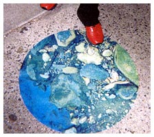 Im New York City Centennial Project will Sonfist auf den Gehsteigen in Lower Manhattan runde "Bodenluken" mit Fotografien von Flüssen, Sümpfen, Teichen, Wiesen und Bäumen anbringen - und zwar gezielt an den Stellen, wo diese Land- schaftselemente vor der Industrialisierung existierten. Wenn man auf diese "Bodenluken" sieht, wird man die Illusion haben, quasi durch die Betondecke auf das verdeckte Wassernetz und die ursprüngliche Vegetation blicken zu können. Sonfist versucht mit diesem Projekt, die entschwundene Geschichte der Naturlandschaft Man- hattans ins aktuelle urbane Bewusstsein zurückzubringen. |